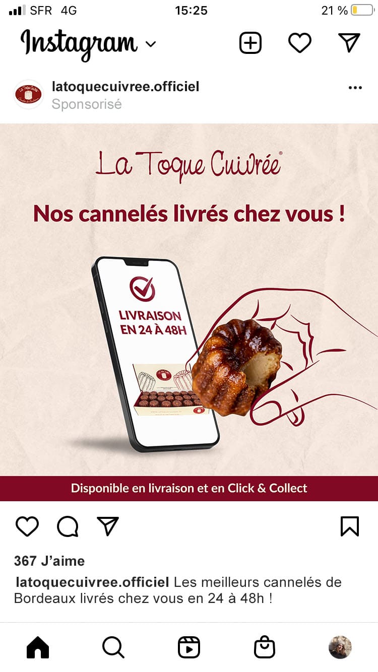 Création de visuels pour une campagne sponsorisée sur Instagram, mêlant photographie et illustration afin de capter l’attention et de refléter l’univers gourmand de la marque.